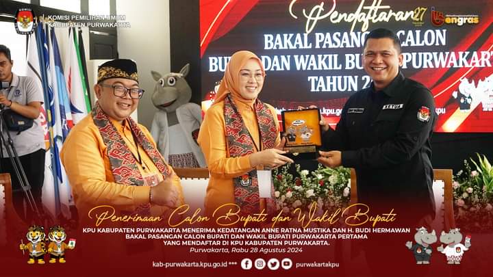 “Kami ingin Purwakarta terus menjadi daerah yang cantik, baik dari segi infrastruktur, lingkungan, maupun kehidupan sosial masyarakatnya. Bersama Budi Hermawan, kami siap membawa perubahan yang lebih baik lagi,” ujar Hj. Anne Ratna Mustika dalam pidato singkatnya di depan kantor KPU.