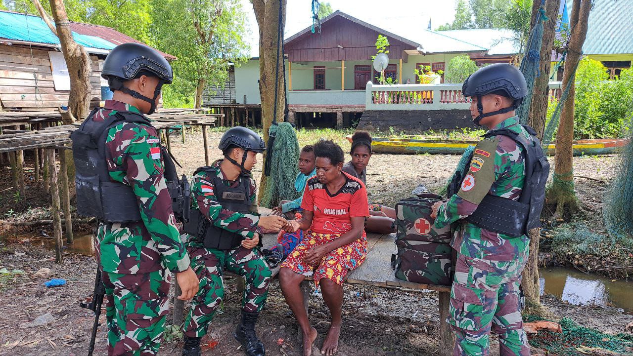 Merauke, haluanindonesia.id — Satgas Yonif 125/Si’mbisa Pos Wanam mengadakan kegiatan patroli pelayanan kesehatan kepada masyarakat di Kampung Wogekel, Distrik Ilwayab, Kabupaten Merauke, Selasa (09/7/2024) kemarin.