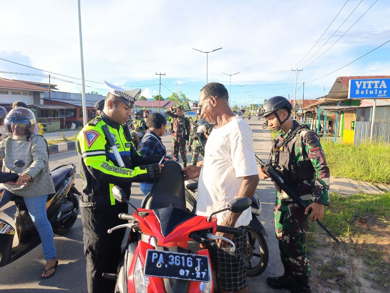 Mappi, haluanindonesia.id – Satgas Pamtas Kewilayahan Yonif 125/SI’MBISA Bersama Personel Kodim 1704/Mappi Dan Kepolisian Resort (Polres) Mappi Menggelar Sweeping Gabungan TNI-Polri Dalam Rangka Menjaga Sitkamtibmas Jelang Idul Fitri 2024 Di Kab. Mappi, Jumat (05/04/2024).