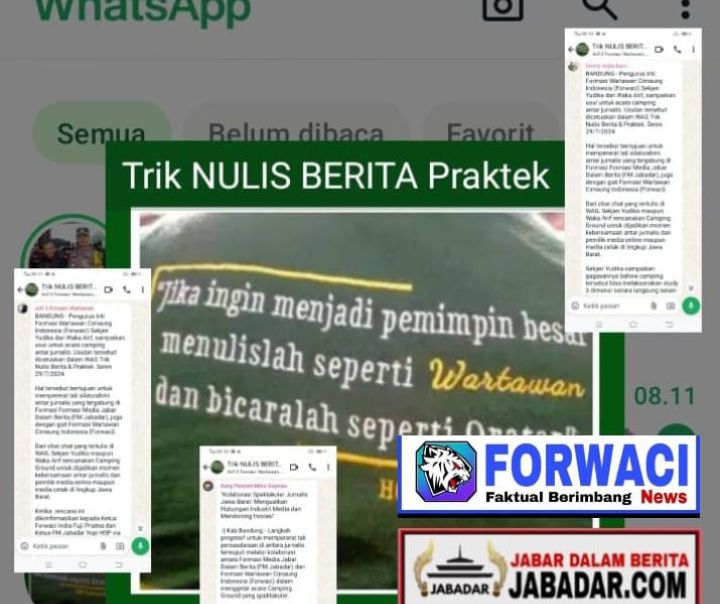 BANDUNG, haluanindonesia.id – Pengurus Inti Formasi Wartawan Cimaung Indonesia (Forwaci) Sekjen Yudika dan Waka Arif, sampaikan usul untuk acara camping antar jurnalis. Usulan tersebut dicetuskan dalam WAG Trik Nulis Berita & Praktek, Senin (29/7/2024).